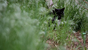 # 바람에 따라 하늘거리는 풀잎을 찍기 위해서였습니다. 바짝 엎드려 카메라를 들고 초점을 맞추던 그때, 검은색의 무언가 쓱 나오더니 저를 보고 흠칫 멈춰섭니다.# 검은 고양이는 검정 옷에 검정 카메라를 들고 있는 저를 보고 살짝 놀란 눈치입니다. 고양이도, 저도 서로 바라본 채 잠시간 대치합니다. 자신의 여유로운 산책길을 방해한 낯선 자에게 보내는 약간의 원망과 경계, 그리고 어쩌면 약간의 호기심이 섞인 눈빛이 느껴집니다.# ‘너를 찍으려고 기다린 게 아니야. 내가 먼저 와 있었다고….’ 오해를 풀고 싶었지만 딱히 전할 방법이 없습
