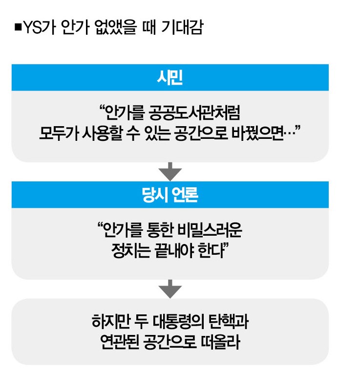 김영삼 대통령이 안가를 철거한다고 밝혔던 1993년. 몇몇 시민은 신문의 기고란에 “안가를 공공도서관처럼 모두가 사용할 수 있는 공간으로 바꾸면 좋겠다”는 의견을 내놨다. 언론들도 당시 “안가를 통한 비밀스러운 정치는 끝내야 한다”고 목소리를 모았다. 남아 있는 안가를 모두 철거해야 한다는 주장이 나오기도 했다.