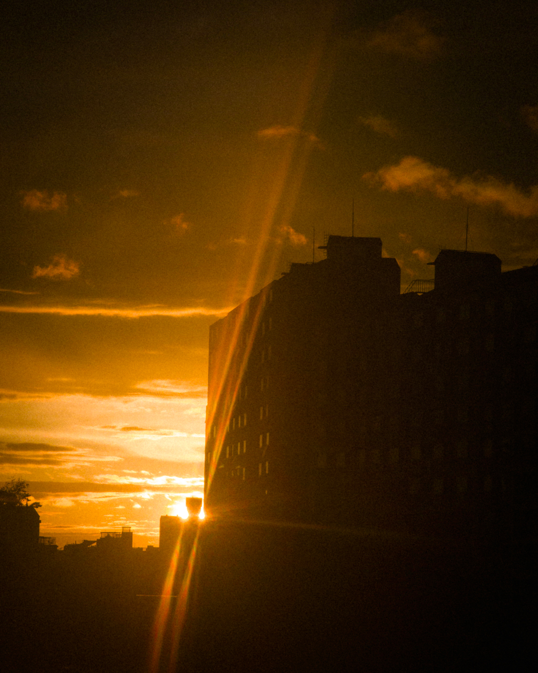 # 바람을 쐬러 옥상 정원에 나갔을 때입니다. 건물 뒤로 해가 넘어가는 중입니다. 사무실에 두고 온 카메라를 가져오기엔 늦었습니다. 손에 쥔 스마트폰으로 사진을 찍습니다. 태양 빛에 변화를 주고 싶습니다. 순간, 번뜩이는 생각이 스칩니다. 카메라 렌즈에 얼굴을 문지릅니다. 그리곤 다시 화면을 봅니다.
