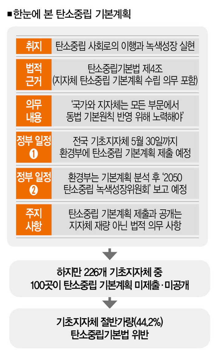 지자체가 탄소중립 기본계획을 수립하고 이를 통해 기후위기 대응 정책을 추진하는 건 재량이 아니라 법적 의무다. 지자체가 탄소중립 기본계획을 수립하고 공개하는 걸 더 이상 지체해선 안 되는 이유다.