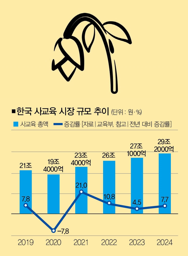 한국의 사교육은 누굴 위한 걸까. 부모들은 자식을 뒷바라지하느라 노후 대비를 하지 못하고, ‘그런 삶’을 살 수 없다고 결심한 젊은층은 아이 낳기를 꺼린다. 저출생·고령화와 맞닿아 있는 사교육 문제는 한국 사회의 가장 큰 리스크 중 하나다.