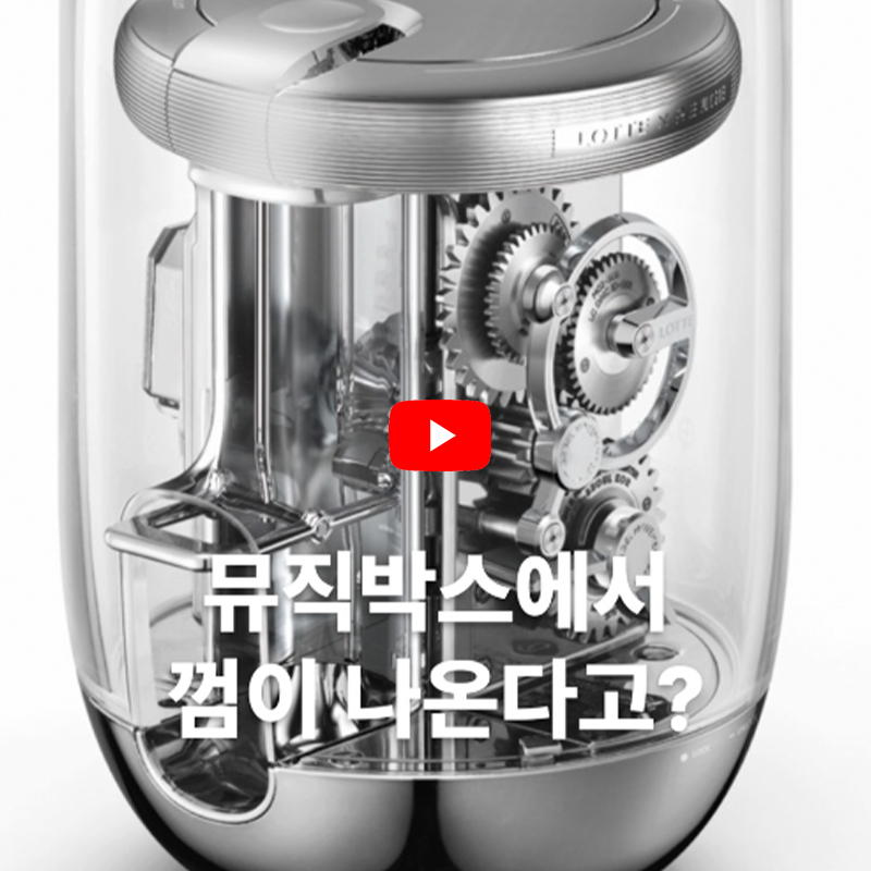 # ‘껌이라면 역시, 롯데껌!’ 어린 시절 TV 광고에서 흘러나오던 롯데껌 CM송이죠. 추억 속의 이 노래를 ‘롯데 자일리톨 뮤직박스’에서 오르골 버전으로 들을 수 있습니다. 뮤직박스 아래의 태엽을 감으면 28초 동안 CM송이 흘러나오고, 음악이 끝날 때 껌이 ‘툭’ 튀어나옵니다.