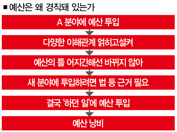 “새로운 일에 예산을 투입하려면 법 등 근거가 있어야 한다. 성가신 부분이다. 그래서 예산은 ‘늘 하던 일’에 투입되게 마련이다.”