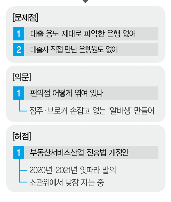 사실 은행 대출 심사 과정의 빈틈도 문제였다. 은행은 영상통화로 본인 확인을 하거나 신분증을 보내 본인인증을 하는 절차를 거쳐 대출을 승인했다. 하지만 ‘생활비 대출’로 둔갑한 ‘부동산 대출’을 잡아내진 못했다. 이 과정에서 은행원을 직접 만난 청년도 없었다. 비대면 대출 심사의 허점이었다.