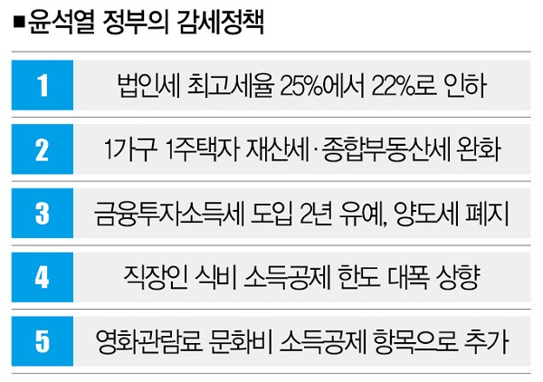 이런 상황에서 윤석열 정부가 꺼내든 카드는 ‘물가와 경기’라는 두마리 토끼를 모두 잡는다는 전략이다. 구체적인 방안은 감세다. 정부는 기업의 경영활동을 돕겠다며 법인세 인하에 나섰다.