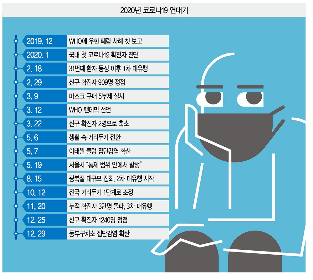 ■장면❶ 대유행과 거리두기 = 2019년 12월 31일, ‘정체불명의 폐렴 환자 27명이 발생했다’는 보고가 세계보건기구(WHO)에 접수됐다. 장소는 중국 우한武漢이었다. 이때까지만해도 폐렴 정도로 여겨졌기 때문에 우리나라는 별 대응을 하지 않았다.