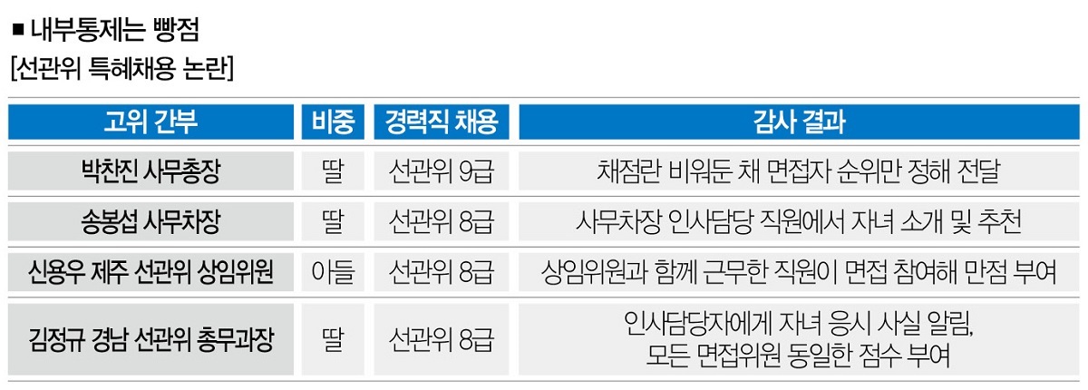 자녀 특혜채용 의혹 터진 선관위