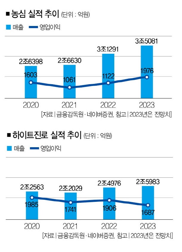 당연히 가격 인상은 농심의 실적만 개선해주는 결과로 이어졌다. 지난해 농심의 매출액은 3조1291억원으로 전년(2조6630억원) 대비 17.5% 증가했고, 영업이익은 5.7% (1061억원→1122억원) 늘었다.