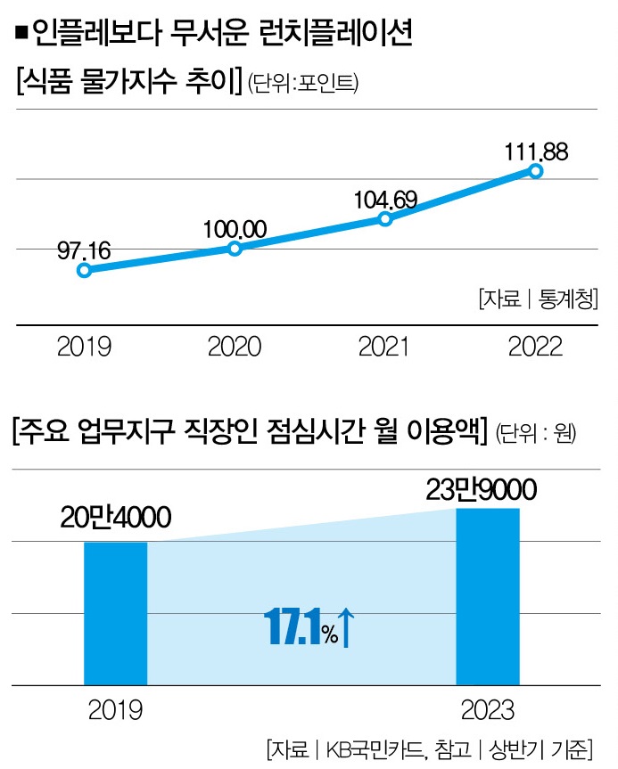 A씨는 통계청이 발표한 공식통계보다 훨씬 더 극심한 ‘런치플레이션(Lunchflationㆍ런치+인플레이션)’의 시대에 살고 있는 셈이다. 대부분의 직장인이 처한 현실도 거의 비슷하다.