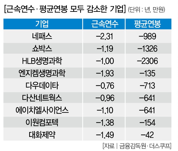 # 근속연수가 길어졌고, 평균연봉이 큰 폭으로 증가했다. 더스쿠프가 코스닥 300대 기업을 대상으로 최근 3년간의 근로여건 변화를 추적한 결과다. 팬데믹을 극복하고 일상을 회복한 가운데 많은 직장인의 삶이 개선됐다는 걸까.