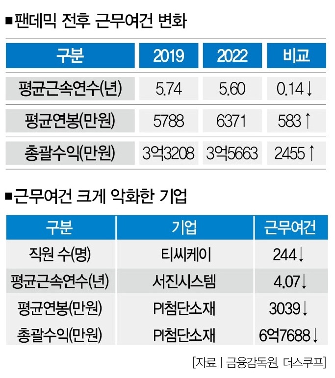 일례로 반도체장비 제조업체 중 코로나19 전후로 가장 높은 연봉 상승률을 기록했던 리노공업(2019년 6469만원→2022년 8654만원ㆍ33.8%)의 올 1분기 매출과 영업이익은 전년 동기 대비 각각 45%, 54% 감소했다.