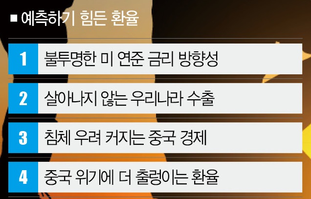 정용택 IBK투자증권 수석연구위원은 “우리나라 환율은 중국경제의 변화를 민감하게 반영한다”며 말을 이었다. “글로벌 투자자는 중국과 경제적 연결성이 높고 시장이 개방된 우리나라를 중국의 대체 시장으로 인식하는 경향이 있다. 중국 경제의 위기 가능성에 우리나라 환율이 더 크게 움직이는 이유다. 중국 경제가 불안해질수록 원화의 약세(환율 상승) 압력은 커질 수밖에 없다. 이는 경기흐름이 양호하고 금리를 높은 수준으로 유지하는 미국으로의 자금 이동을 더 가속화하는 요인이다. 환율이 지금 수준에서 내려오긴 어려워 보인다.”