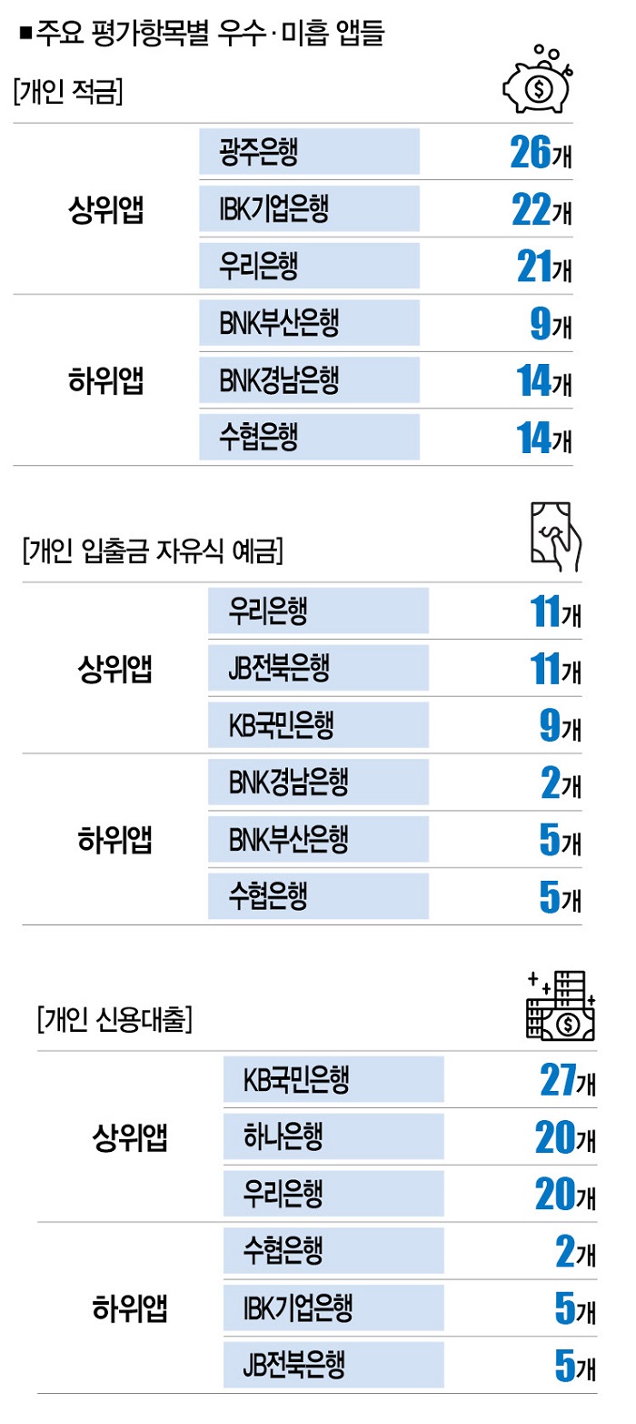 [※참고 : 평가는 해당 항목의 여러 연구원이 개인 금융소비자 입장에서 앱을 직접 다루면서 진행했다. 8월 21일까지 업데이트한 내역을 기준으로 삼았고, 모바일 앱 인터페이스(UI)와 사용자 경험(UX)을 중심으로 평가했다.]