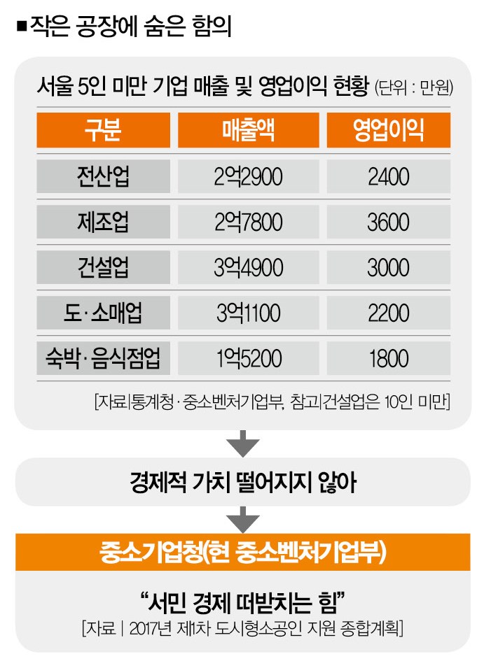 이런 작은 공장의 가치는 ‘도시형소공인 지원 종합계획’에서도 엿볼 수 있다. 정부가 2017년부터 2022년까지 추진한 1차 도시형소공인 지원 종합계획에서 당시 중소기업청(현 중소벤처기업부)은 “소공인은 서민층의 일자리 창출 원천이며 지역 산업의 기반”이라며 “생계형, 서비스업 대비 고용 지속 효과도 높은 산업”이라고 평가했다.